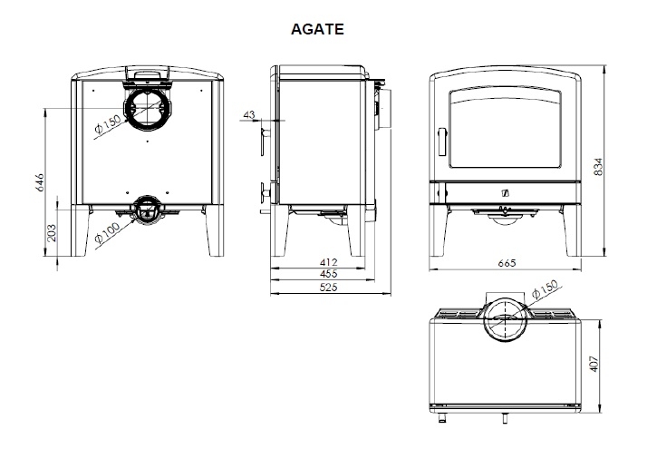 Litinová kamna AGATE vzduchotěsná - 58 880,00 Kč bez DPH