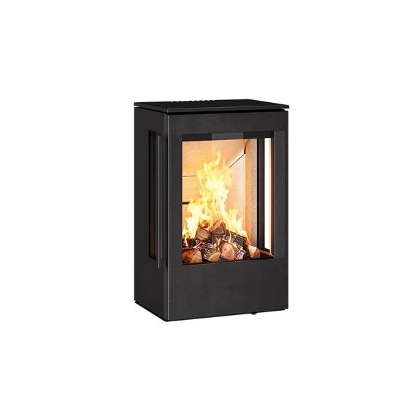 Kamna s volitelnými dvířky Classic (c) nebo Modern (m), jsou k dispozici závěsná na rovnou stěnu, závěsná přes roh nebo na soklu 24 mm (pouze na nehořlavé konstrukce), s/bez bočního prosklení.