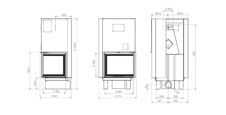 Ocelové topeniště FAS 80 LD/LG - pravé / levé boční prosklení