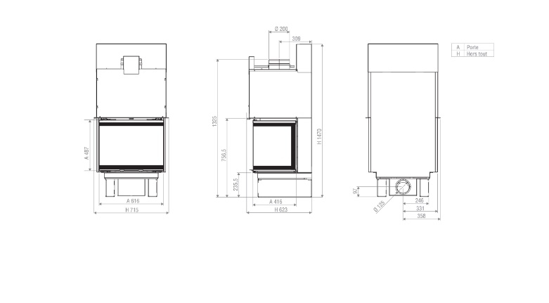 Ocelové topeniště FAS 80 3V - čelní, pravé a levé boční prosklení